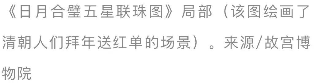 到了清康熙年间,市面上出售的贺年帖不再采纳白纸制作,而运行多数通用红色硬纸,因为红色有喜庆、祥瑞之意,其时的东谈主们称之为“红单”。这些贺年帖上头印有“祥瑞如意”等祝颂语,装帧精致,有的贺年帖还搭配精致的包装锦盒(称为“拜盒”)出售,祝贺者只需在贺年帖上填写被祝贺者的姓名和我方的姓名即可,与今天的贺卡照旧十分相通。